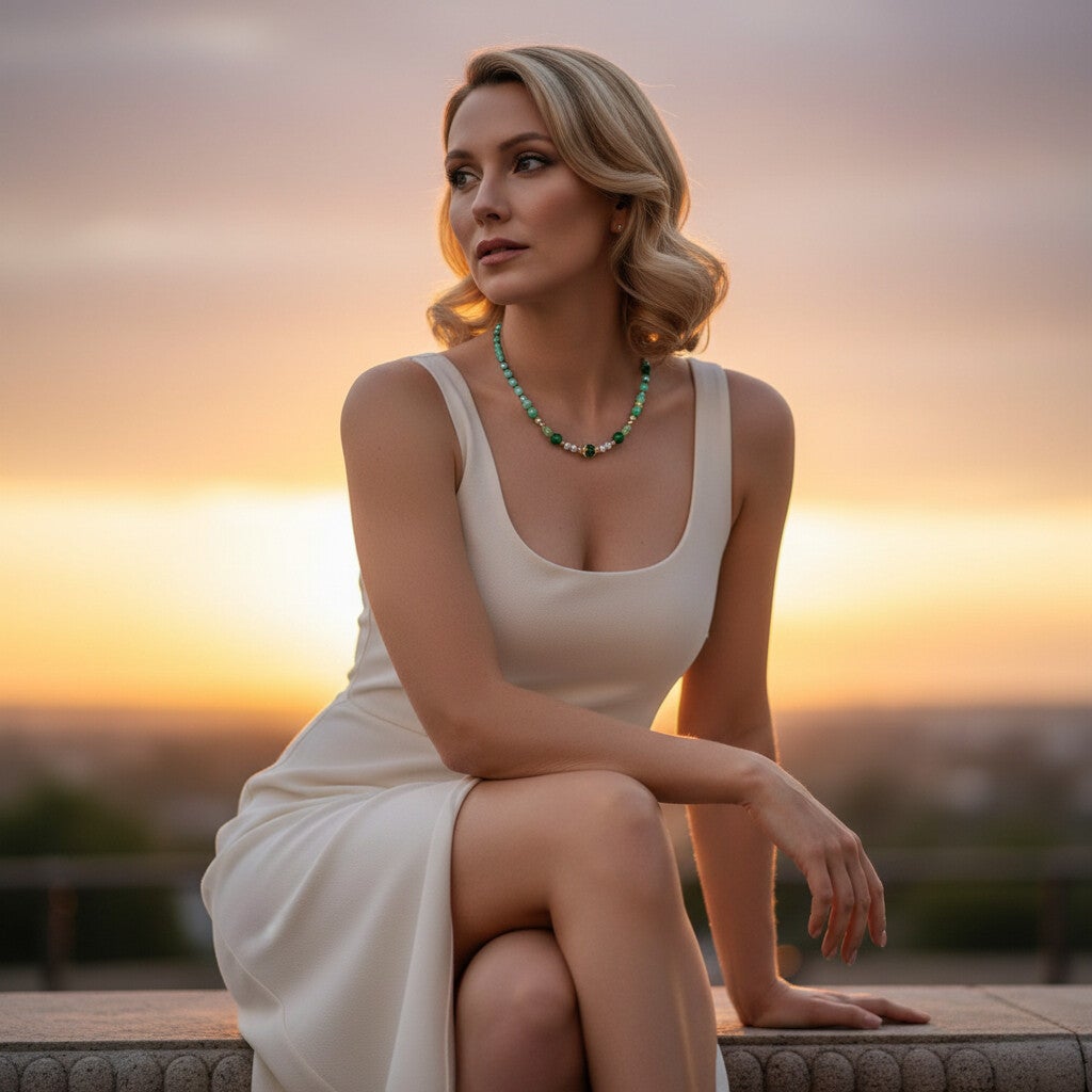 Ses nuances de vert délicat et de reflets lumineux évoquent la nature à l’état pur, entre mystère et raffinement.