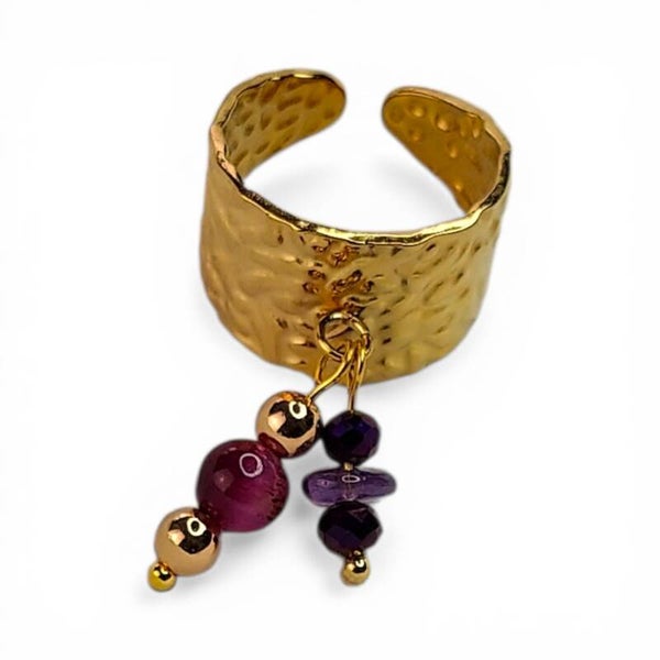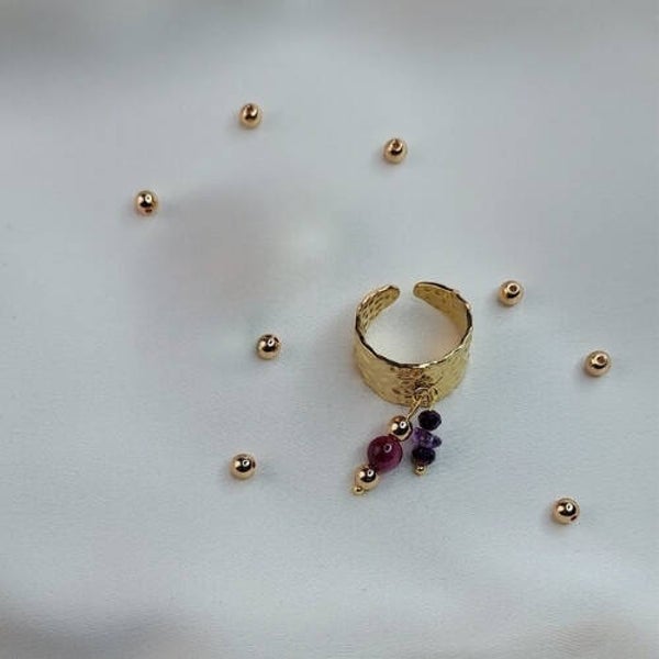 Bague ajustable en acier inoxydable doré à l’or fin 18K, au design texturé élégant.