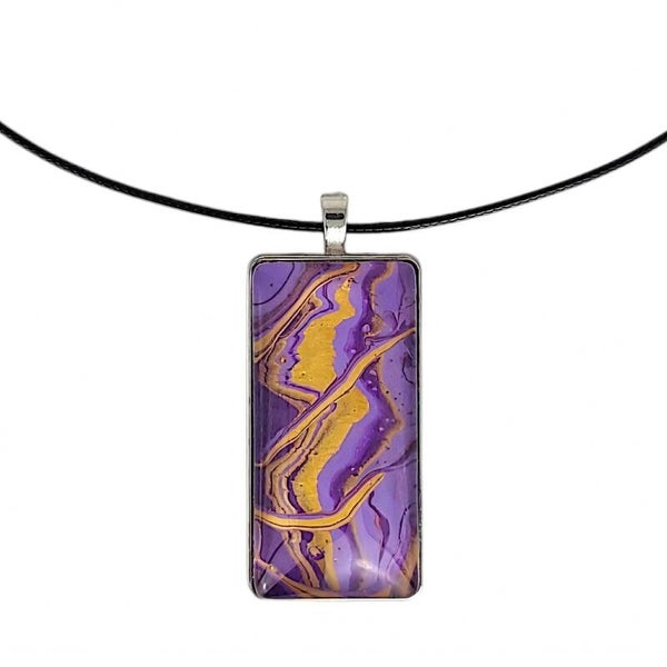 Laissez-vous séduire par le collier “Brume Céleste”, au cabochon ,peint à la main, aux nuances violettes et reflets dorés. Une brume lumineuse entre ciel et cosmos, qui capte la lumière avec une élégance intemporelle.